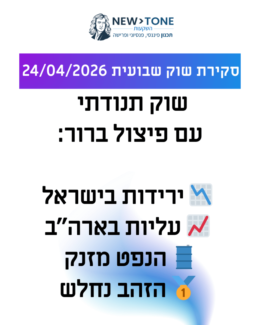 * הערה: הסקירה הנה לידיעה כללית בלבד ואינה מהווה המלצת השקעה כמשמעותה בחוק היעוץ. כל הפועל בהסתמך על הסקירה, עושה זאת על דעתו בלבד ואחראי על כל נזק או הפסד שיגרם לו.